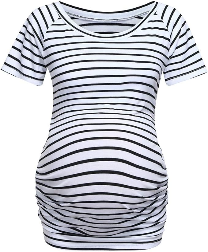Umstandsmode Damen Kurzarm Schulterfrei Shirt Mit Gestreift Druck Muster Umstandsshirt T Shirt Oberteil Damen Schwangere Maternity Top Shirts Amazon De Bekleidung