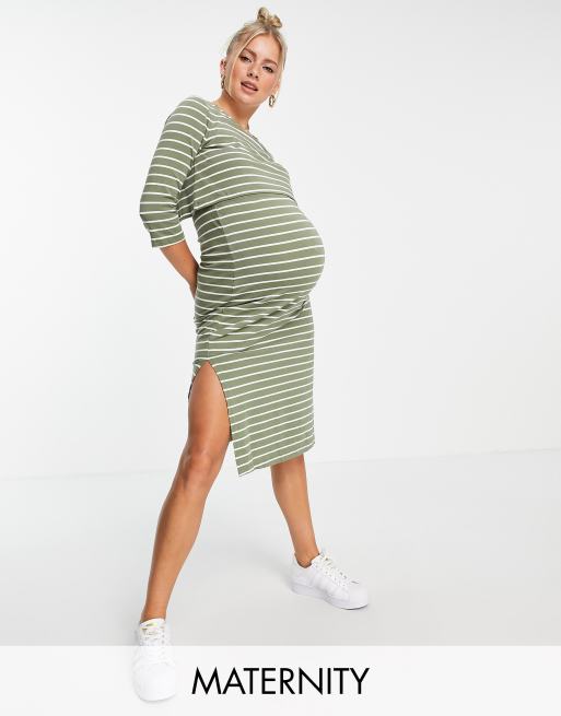 Mamalicious Umstandsmode Gestreiftes T Shirt Kleid Aus Bio Baumwolle Mit Stillfunktion In Grun Und Weiss Asos