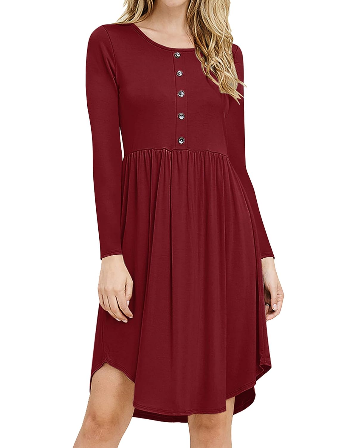 Odosalii Damen T Shirt Kleid Langarm Kleider Casual A Linie Skaterkleid Tunika Kleid Mit Taschen Damen Bekleidung Memorial Cards Ie